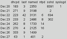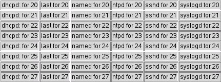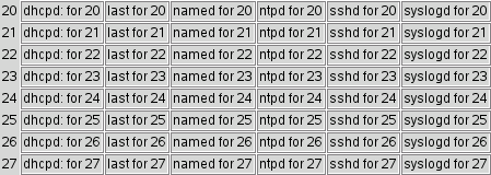 foreach type { dhcpd: last named ntpd sshd syslogd } {