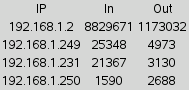 Extend this code to read the file and generate a report of IP addresses, total bytes read by that IP address and total bytes written by that IP address.