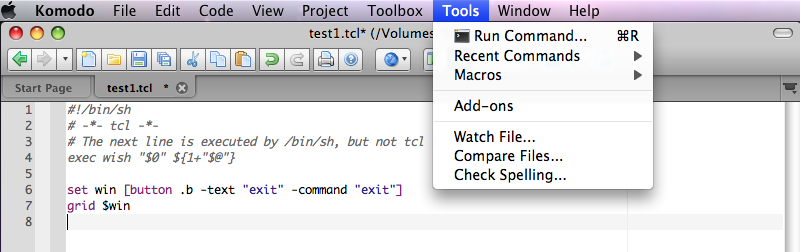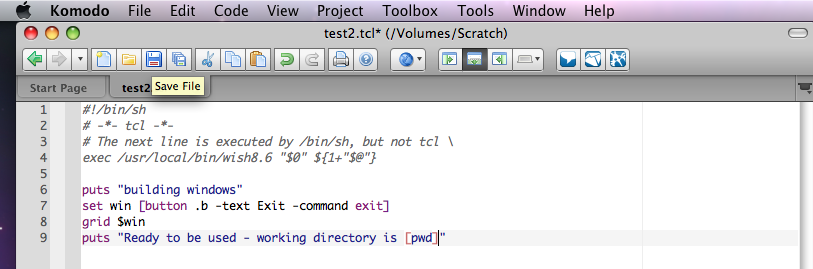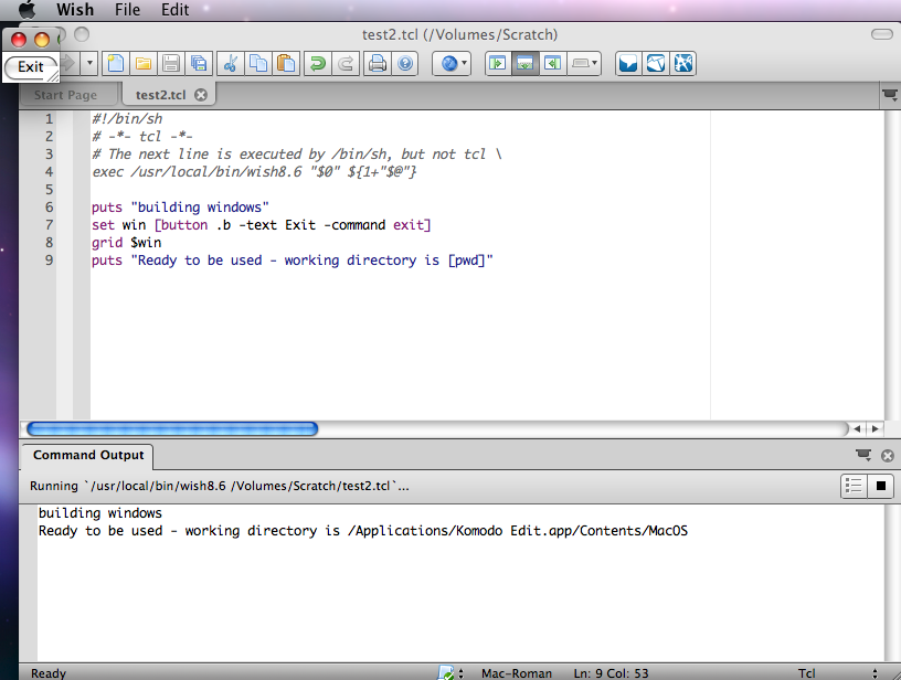 You can invoke the program either by explicitly telling Komodo to use the wish8.6 interpreter (like this: