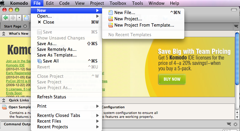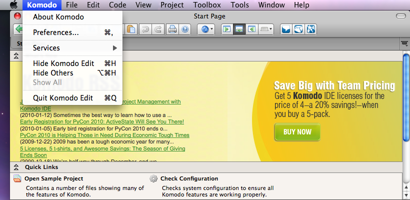 3. When Komodo Edit starts you'll see a screen that resembles this: